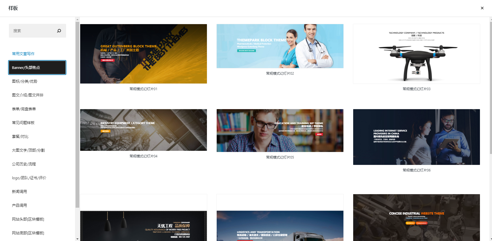 区块样板是WordPress编辑器内置的模块库,打开选项可以预览样板,插入后可以直接编辑