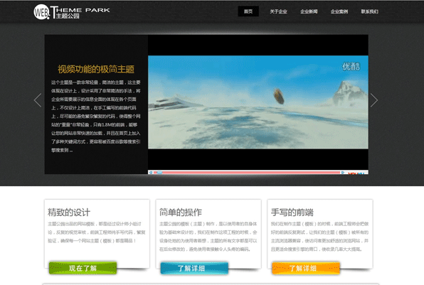 这款网站主题(模板)是一款多组件,多功能的主题,这款网站主题(模板)支持视频播与焦点图在一个框架内旋转,能够将您的视频信息最直观的带给用户,多种材质的添加,以及细节的设计,使这款网站主题(模板)非常适合于科技行业,会展行业等具有动感科技的领域。